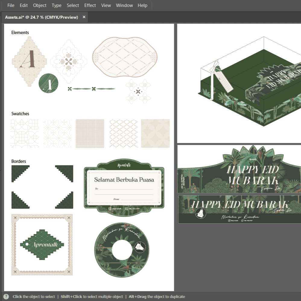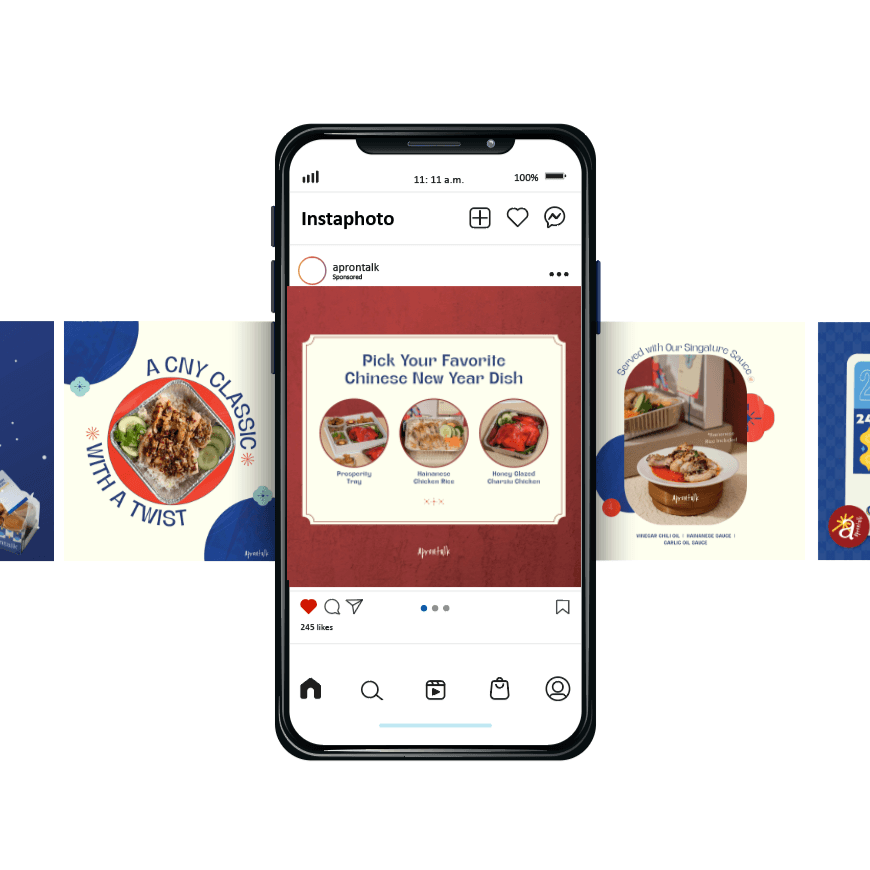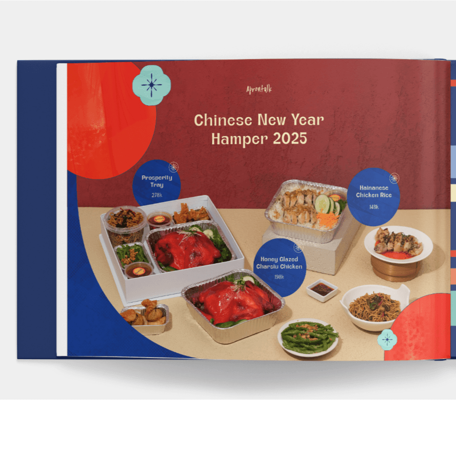 An in-house brand packaging design exploration for Aprontalk's Christmas, Lunar New Year, Cap Go Meh, and Ramadan packaging design. Each design feels festive, all while still keeping brand consistency at the forefront of my creative decision. This exploration included tailored illustrations, color palettes, typography, and design assets, as well as product photography to highlight the menus for each holiday.